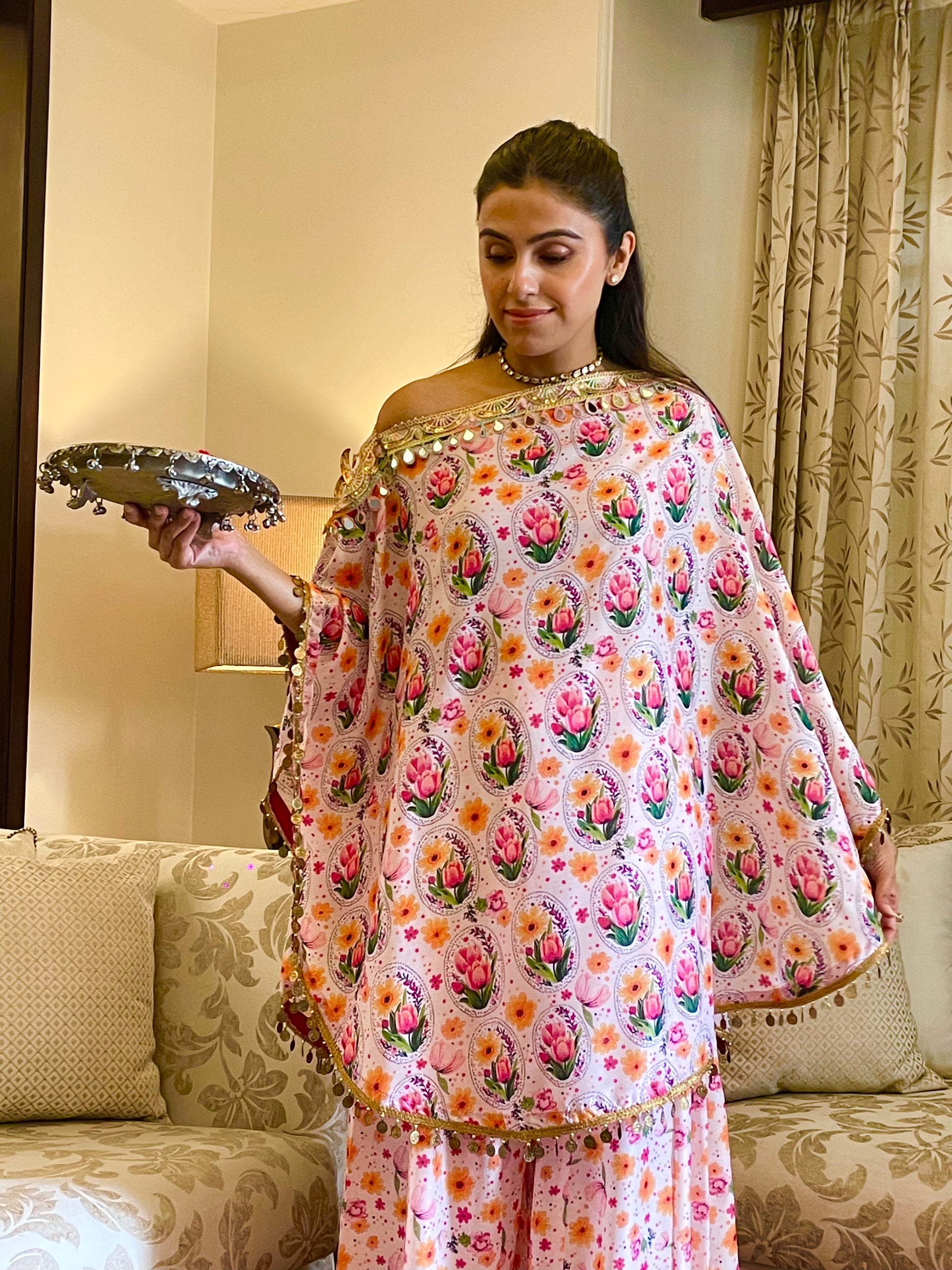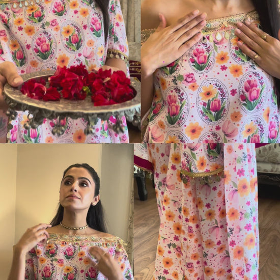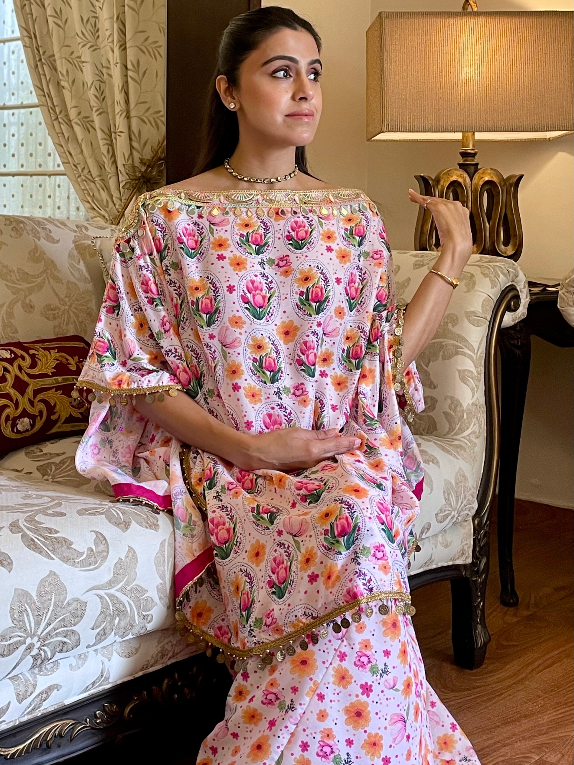 This stunning printed festive wear with intricate design and vibrant colors makes it a visually striking ensemble that's perfect for festive occasion.